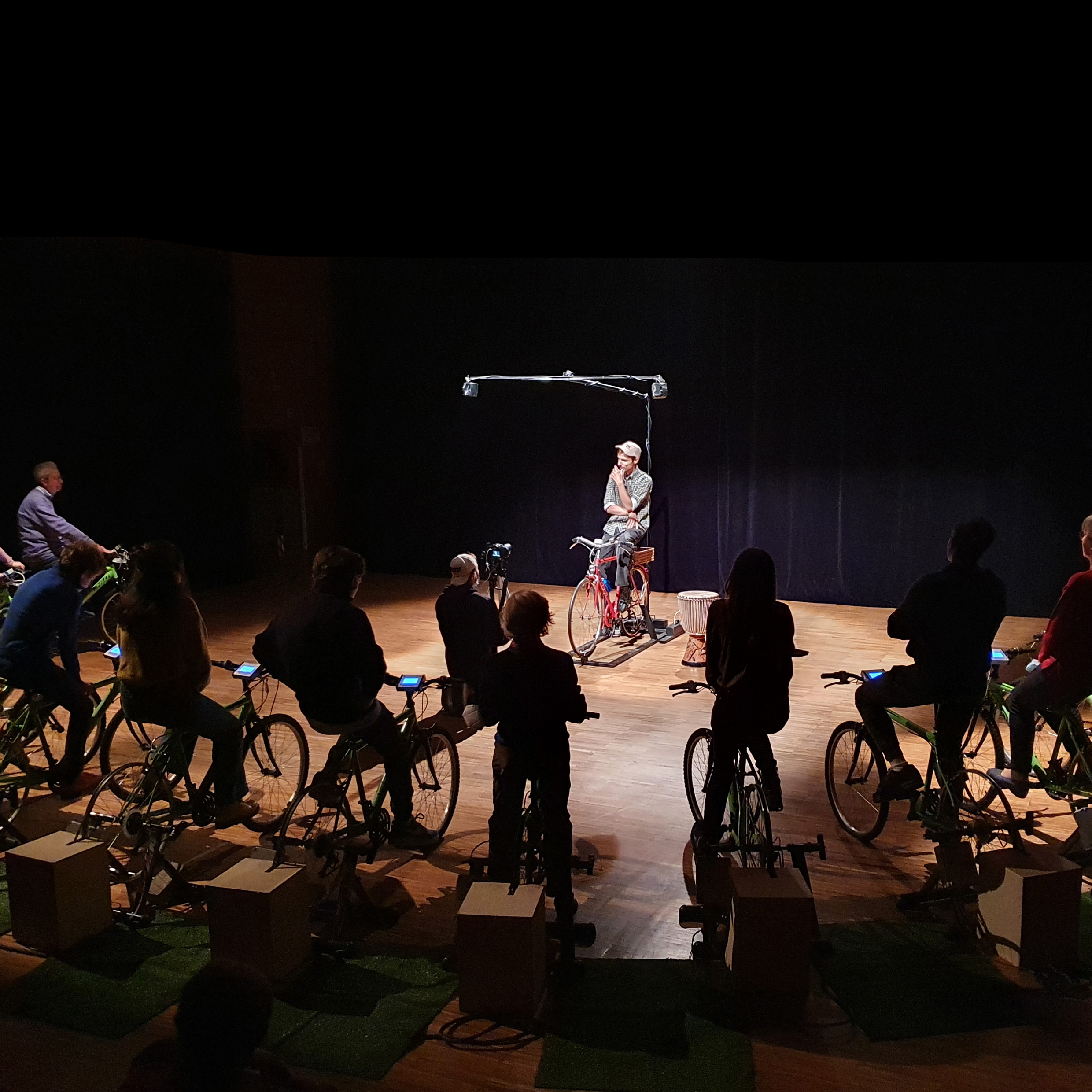 In a world made up of so many, sometimes too many, words, we try to propose concrete actions, the most important of which is Teatro a Pedali, our theatrical format that allows the stage to be powered by the audience's pedaling. The spectator becomes a fundamental element of the show, because without him the stage would be in the dark!