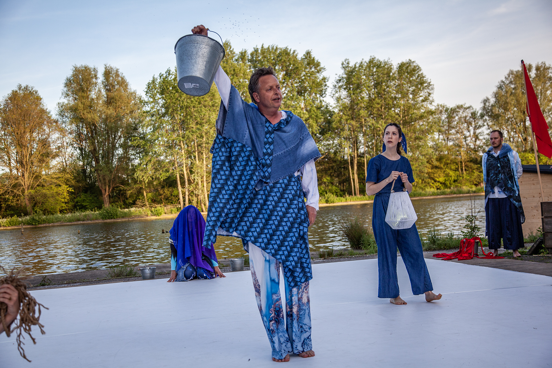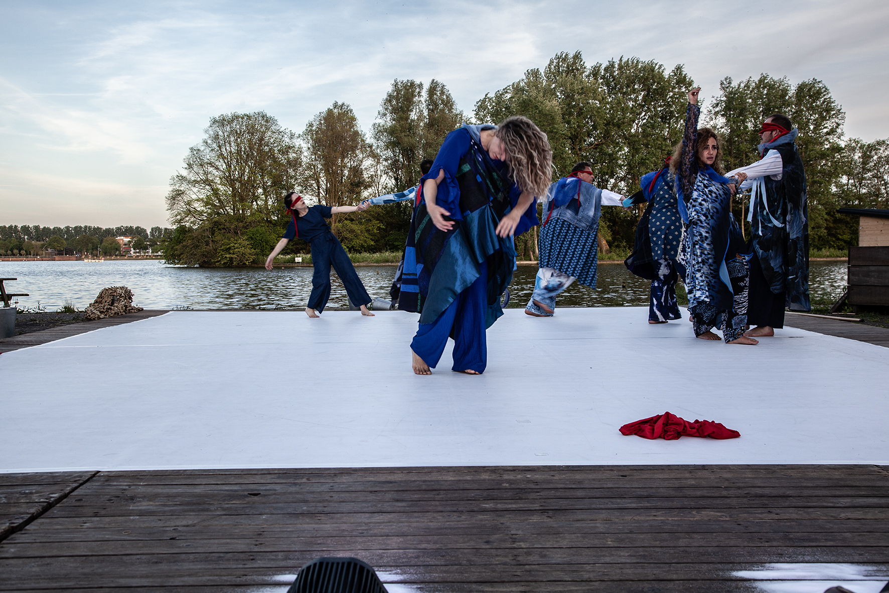 It allows for deep and personal experiences with water. The performance is both physical and symbolic, taking attendees through different worlds. The text, in the form of storytelling and spoken word, highlights various perspectives through personal experiences with water. An international team of performers brings their personal experiences and relationships with water, deeply rooted in their cultural backgrounds and personal experiences. All this results in a mosaic performance that challenges the audience to think: How does this theme affect me? And what can I do about it? Emotionally powerful, symbolic, visual, and inspiring.
