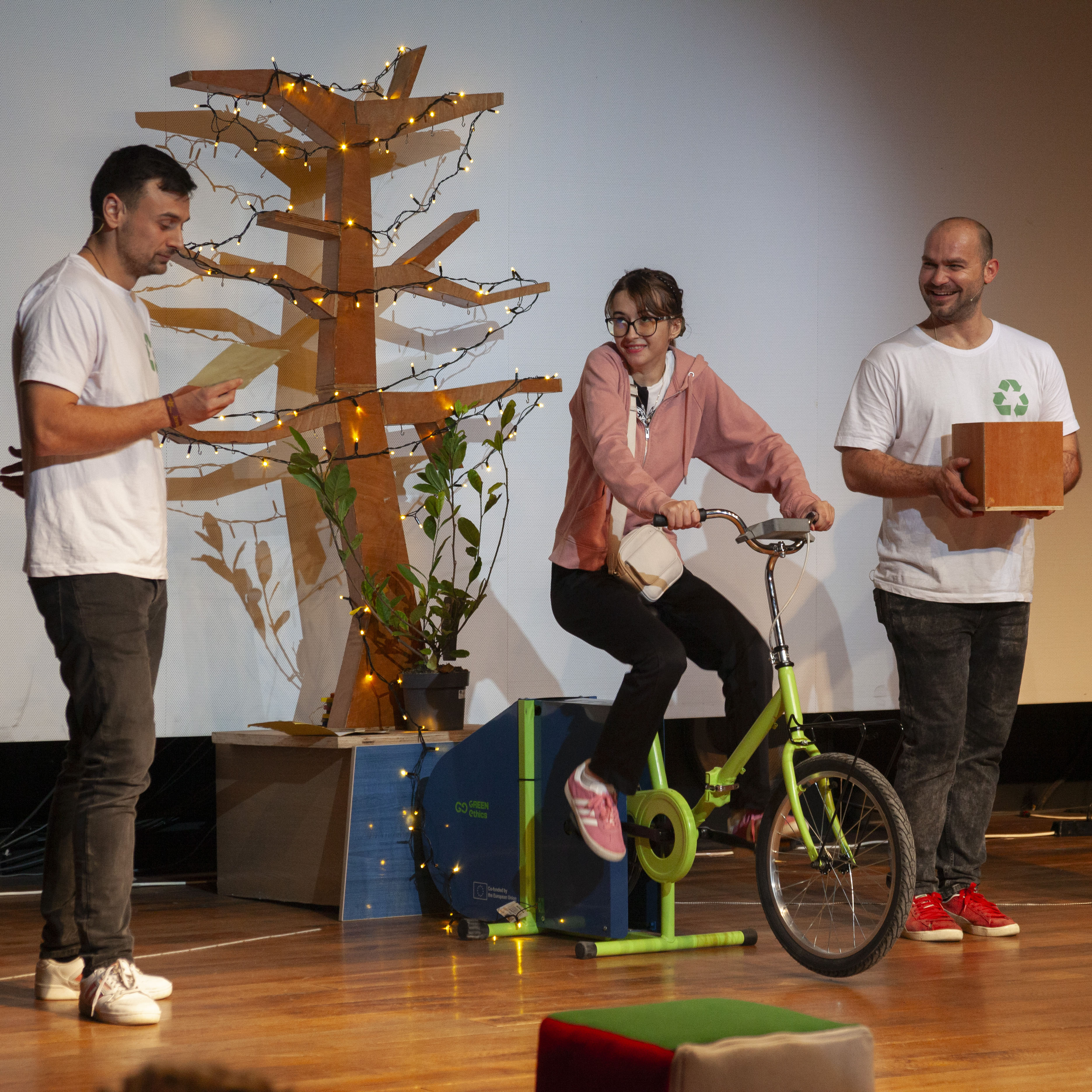 “Slightly Delayed?” turns environmental education into an interactive improv theatre, exploring climate change, biodiversity, and overconsumption. The audience actively shapes the performance through games, quizzes, and challenges.